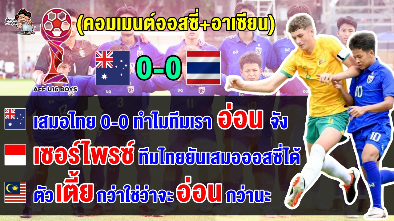 คอมเมนต์ออสซี่+อาเซียน หลังไทยเสมอออสเตรเลีย 0-0 ศึก AFF U16 ปี 2024